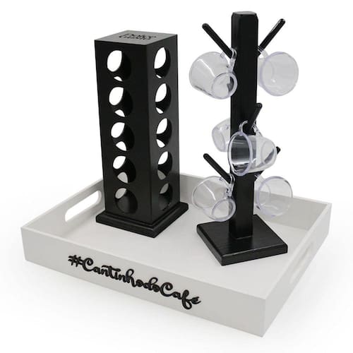 Esse é o produto ideal para decorar o seu tão especial cantinho do café ou até mesmo presentear uma pessoa querida, além da beleza o porta xicaras é feito em mdf que é muito resistente, ideal para xicaras/canecas de até 240ml. Com esse porta xicaras você vai conseguir deixar seus armários muito mais organizados.