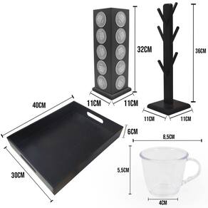 Esse porta cápsulas tem ar moderno feito em madeira mdf pintada com em preto, dando um ar de elegância para qualquer canto de sua casa. Organize seu canto do café com as casulas sempre a mão e ainda decore o seu ambiente com certeza vai ser uma peça que vai chamar a atenção e tirar elogios