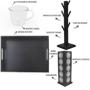 Kit 6 xicaras acrílico porta capsulas para dolce gusto bandeja cristal Composição do kit; 6 xícaras 1 bandeja 1 suporte de xícaras 1 porta capsulas para dolce gusto