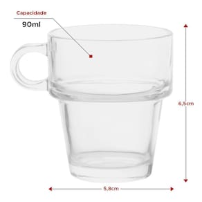- Capacidade: 90ml - Medidas: 5,8cm x 6,5cm Diâmetro x Altura - Design Empilhável Ean: 7908281399888