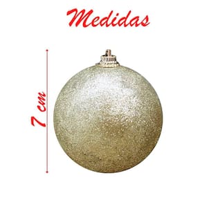 Kit 60 Bolas Enfeite Natalino Árvore Natal Glitter Dourado 70mm -