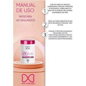 Shampoo 60 Segundos Óbrigatórios Rofer 1L O Shampoo 60 Segundos Óbrigatórios Rofer 1L foi enriquecido com uma combinação única de ingredientes naturais. Formulado com óleo de ricino para fortalecer, ácido hialurônico profundamente, aloe vera para suavizar, e óleo de macadâmia para nutrir instensamente os fios. Modo de Usar. Com os cabelos molhados aplique o Shampoo Resgate 7 em 1, massageando com suavidade. Deixando agir por alguns minutos. Em seguida enxágue bem e repita a operação caso necessário. Precauções: Manter fora do alcance das crianças. Conservar ao abrigo da luz, calor excessivo, em lugar fresco e arejado. Não aplicar sobre a pele lesionada ou irritada. Em caso de contato com os olhos, enxágüe abundantemente com água. Se houver sensibilidade ou alergia a algum componente da fórmula, suspenda o uso imediatamente e procure orientação médica. MÁSCARA 60 SEGUNDOS OBRIGATÓRIOS Descubra o segredo para cabelos deslumbrantes em apenas 60 segundos! A Máscara 60 segundos da Dois Corações: o poderoso tratamento para cabelos secos e danificados. Enriquecida com vitaminas, proteínas e minerais essenciais, esta máscara revolucionária fornece emoliência e hidratação intensa, restaurando a hidratação natural dos fios e conferindo uma sedosidade incrível. Transforme seus cabelos em apenas um minuto! Experimente a Máscara 60 segundos da Dois Corações e sinta a diferença. MODO DE USAR