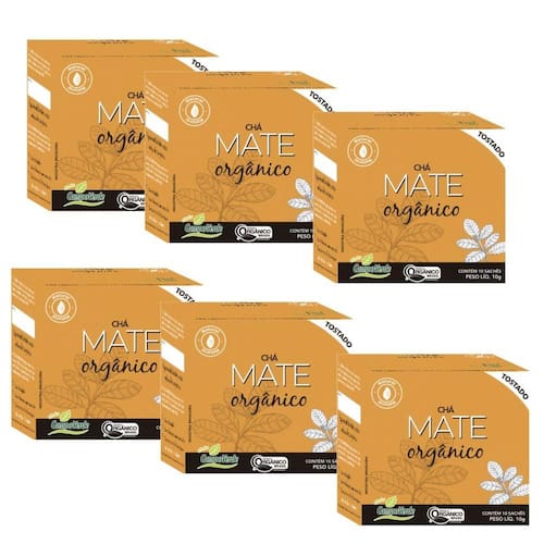 KIT 6 CAIXAS CHÁ MATE TOSTADO 100% ORGÂNICO CERTIFICADO