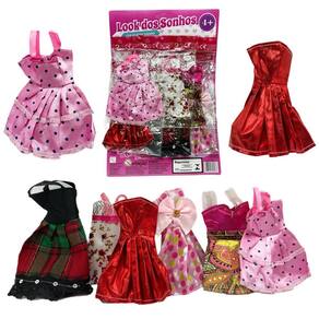 Kit 6pç roupinha para boneca roupa vestido look fashion: a moda nunca para