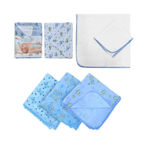 Kit 6Pçs Enxoval Cueiro+Toalha De Pano+Toalha De Banho Azul