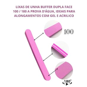Kit 6Un Lixa Rosa Buffer Reta Alongamento Polir 100/180 Unhas Gel Acrílico Revenda Ideal para profissionais e uso pessoal, este kit com 12 unidades garante um polimento suave e uniforme, perfeito para preparações de unhas alongadas.