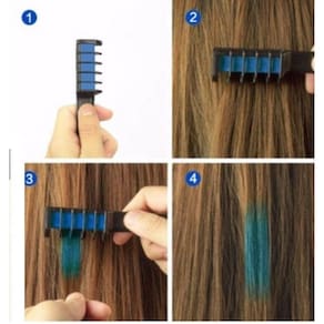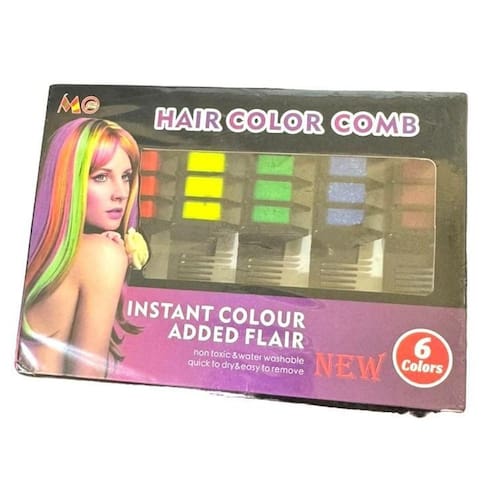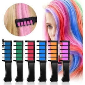 Pente com giz colorido para pintura temporária kit com 6 cores diferentes modo de uso: umedecer a mecha de cabelo passar o pente até que atinja o tom desejado usar chapinha ou secador para uniformizar a cor produto não toxico pode ser utilizado em crianças para retirada do produto, usar agua corrente tamanho do pente: 12 cm tamanho do giz: 5cm