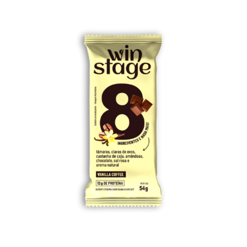 A Barra de Proteína Vanilla Coffee Sem Açúcar WinStage é feita com apenas 8 ingredientes integrais, saudáveis e de alta qualidade. Possui 12g de proteína e é perfeita para você utilizar no café da manhã, de lanche ou antes e depois dos treinos.