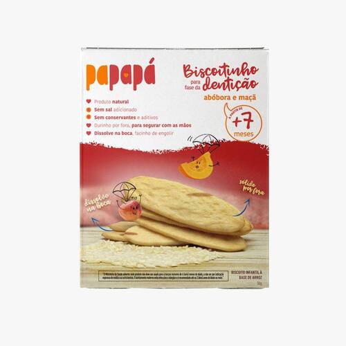 O Biscoitinho para Fase de Dentição Maçã e Abóbora Papapá tem textura sólida por fora, para que os bebês possam segurar com as próprias mãos, mas derretem na boca assim que entram em contato com a saliva, permitindo seu consumo mesmo quando os dentinhos ainda não estão 100% formados. O produto também auxilia no processo de "coçar" a gengiva quando os dentinhos estão nascendo, ajudando a reduzir o incômodo causado por esta fase. Uma opção de lanchinho saudável e nutritivo para o seu bebê.