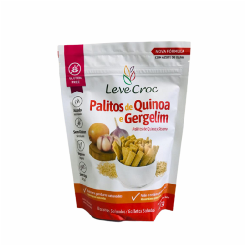 O Biscoito Palito Salgado Quinoa e Gergelim Sem Glúten Leve Crock tem textura e sabor únicos! Levemente salgado e muito nutritivo, é preparado com gergelim e quinoa, que foi eleita pela Academia de Ciências dos EUA e pela Organização das Nações Unidas (ONU) o alimento vegetal mais completo e perfeito do planeta. Contém fibra da polpa de beterraba, um ingrediente funcional que incrementa o teor de fibras do alimento. Isento de glúten, leite, ovos e soja.