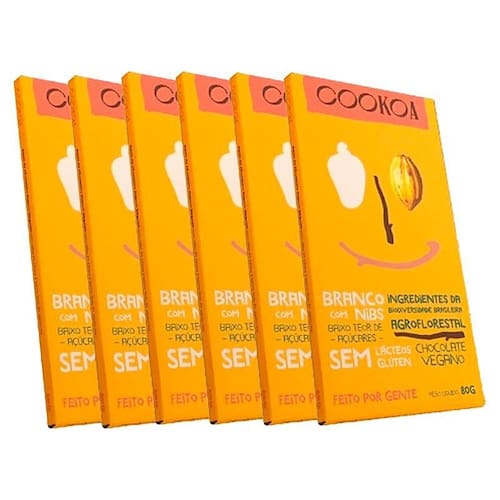 Kit 6x: chocolate branco com nibs vegano cookoa 80g