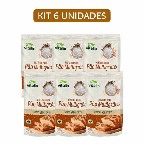 Kit 6x: mistura para pão multigrãos sem glúten vitalin 300g