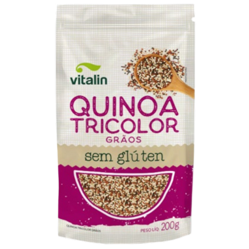 A Quinoa Tricolor em Grãos Sem Glúten Vitalin, além de ser ótima fonte de carboidratos de baixo índice glicêmico, vitaminas, minerais e gordura saudável, a quinoa contém todos os aminoácidos essenciais que o organismo não produz.
