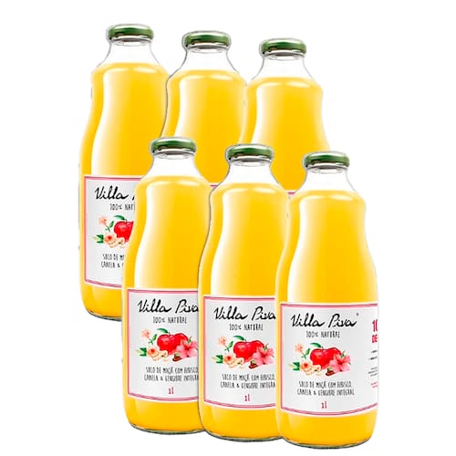 O Suco de Maçã com Hibisco, Canela e Gengibre Sem Açúcar Villa Piva é rico em quercetina e pectina que protegem o cérebro dos radicais livres, ajuda na prevenção do Alzheimer e contribuem para o bom funcionamento do sistema digestivo.