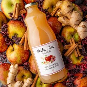 O Suco de Maçã com Hibisco, Canela e Gengibre Sem Açúcar Villa Piva é produzido somente com 2kg de maçã por litro, sem elementos artificiais, corantes, açúcares ou conservantes.