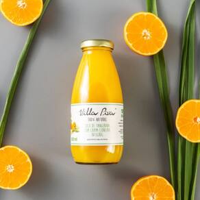 O Suco de Tangerina com Capim Cidreira Sem Açúcar Villa Piva é produzido somente com 2,2kg de tangerina por litro, sem elementos artificiais, corantes, açúcares ou conservantes.