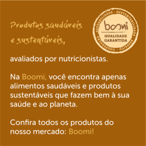 Sobre a Boomi: A Boomi é um mercado online com produtos saudáveis e sustentáveis, que fazem bem à saúde e ao planeta. São mais de 3.500 produtos de 150 pequenas marcas para você! Nascemos pequenos, mas com um propósito gigante: conectar pessoas a produtos acessíveis que tragam benefícios para a saúde, para o planeta e para a sociedade. Para isso, buscamos ofertar produtos de pequenos agricultores e pequenas empresas em um mundo cada vez mais veloz e que busca mais produtividade. Vamos sempre buscar levar o melhor para você! Nosso propósito é conectar alimentos saudáveis e produtos naturais e sustentáveis a pessoas preocupadas com a sua saúde e com a saúde do planeta. Com preço justo, comodidade e informações confiáveis. Curadoria: Nossos produtos são criteriosamente validados pela nossa curadoria de produtos saudáveis, que busca produtores e empresas que compartilham do nosso alto padrão de qualidade. Da enorme lista de ingredientes banidos à preocupação do bem estar animal, desde o primeiro dia seguimos fieis aos nossos valores, trabalhando com transparência e práticas sustentáveis. Vendemos apenas produtos que admiramos e que nos orgulha.