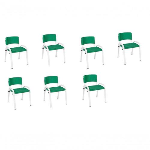 Kit 7 Cadeiras Infantil Iso, Escola, Base Branco- Verde Escuro