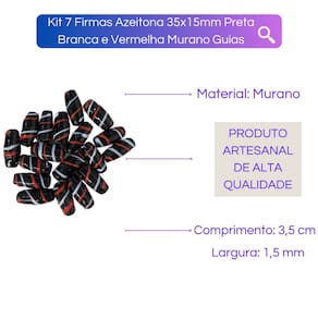 O Kit com Firmas formato azeitona 35x15 mm é ideal para fazer sua guia de proteção e trará muita paz, intuição e proteção do seu Orixá. Produzidas em Vidro Murano possuem alta qualidade e longa durabilidade. Tem formato cilíndrico com furo passante no meio com espessura suficiente para variados tipos de cordões. Enviamos seu produto em até 24 horas após a confirmação de pagamento!