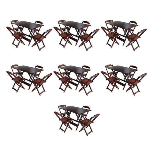 Kit 7 Jogos De Mesa Dobravel Com 4 Cadeiras De Madeira 120x70 Para Restaurante E Bar - Imbuia
