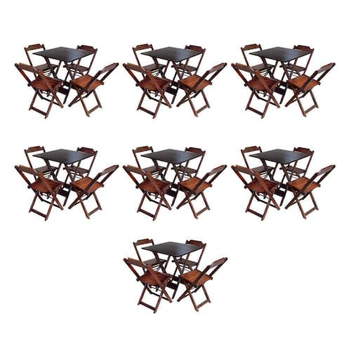 Kit 7 Jogos De Mesa Dobravel Com 4 Cadeiras De Madeira 70x70 Para Restaurante E Bar - Imbuia