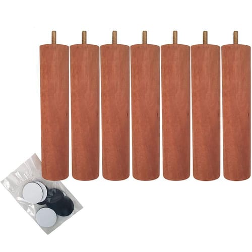 Garantia: 90 Dias / Peso: 1,785Kg / Cor: marrom / Ref: 79DM20MELX7Dimensões: 4,2cm (C) x 4,3cm (L) x 20cm (A)Cuidados: Não lavar com materiais abrasivos.Conteúdo: 07 Pés de MadeiraMaterial:- Madeira de Eucalipto com Umidade de 15%, Madeira 100% reflorestada.- Prisioneiro de aço zincado em amarelo trifásico;- Tinta PU a Base de Solventes.- Feltro Emborrachado.Podendo ser utilizado em hotéis ou até mesmo na sua casa, o conjunto é ideal para cama de casal e possui rosca padrão, que se adapta a qualquer tipo de cama box ou baú, permitindo maior espaço em baixo da cama para armazenar objetos ou para quem deseja uma cama mais alta que o tamanho normal. Os 7 pés possuem feltro para serem fixados na base inferior, protegendo e evitando arranhar e riscar seu piso ou laminado.