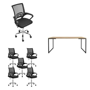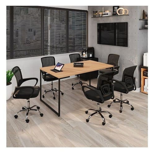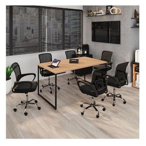 Kit 7 Peças com Uma Mesa de Reunião e 6 Cadeiras de Escritório Tela Mesh Espresso Móveis Preto