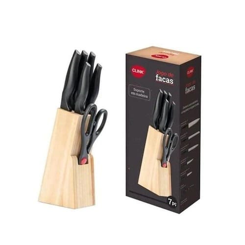O jogo de facas que todo bom cozinheiro precisa ter, com 1 faca de carne, 1 faca de pão, 1 faca de cozinha, 1 faca multiuso, 1 faca de legumes, 1 tesoura. O seu suporte permite armazenar separadamente as facas, o que evita possíveis desgastes gerados pelo contato das lâminas com outros utensílios e ajuda a preservá-las. Por falar nas lâminas, elas são de aço inox, um material fácil de limpar, que é inerte, não deixa gosto ou cheiro e do qual não se desprende nenhum tipo de metal. Os cabos são emborrachados para proporcionar maior conforto e segurança para suas mãos, já que não escorrega.