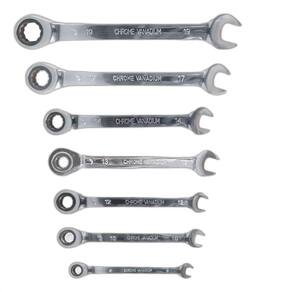 Kit 7 peças jogo chave ferramenta combinada catraca boca Jogo de chaves combinada idea com chave catraca jogo de chaves combinadas com catraca articulada, composto por um estojo plástico com 7 peças. Tam: 8 mm, 10 mm, 12 mm, 13 mm, 14 mm, 17 mm e 19 mm
