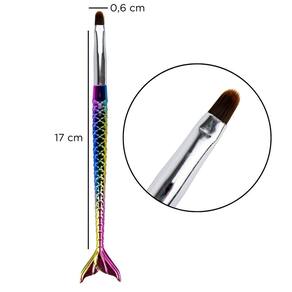 Contém: 01 - Kit com 7 Pinceis para Unhas Cabo Sereia Nosso Kit Pincéis Sereia para Manicures, sua feitos com materiais de alta qualidade, com cerdas macias e precisas. Desenvolvidos para decoração de unhas e alongamentos como de gel, acrílico e porcelana. Permitem a criação de lindos desenhos, modelos, formas e pinturas artísticas, em unhas naturais ou artificiais. Indispensáveis em seu studio e salão Seu maior diferencial são seus cabos, que além de um design lindo, possui relevo nas escamas oque não permite que escorreguem das mãos e sejam confortáveis de segurar por muito tempo. Características Principais: - 7 unidades que foram o kit completo para a Nail Designer; - Alta qualidade; - Diversos usos; - Criação de desenhos, decorações e aplicação de Gel ou Fibra; - Para ou doméstico; - Cerdas Macias; - Cerdas precisas; - Todos possuem protetor de cerdas; - Cabo que evita escorregões; - Cerdas perfeitas; - Design encantador. Medidas: Pincéis de 17 Centímetros com pontas que variam de 0,1 a 1,5 de largura. Boas Compras ; Marca: Não Informado