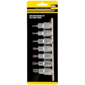 - marca: eda profissional - referência: 0lh - encaixe quadrado de 1/2 pol. - kit com 7 soquetes curtos - pontas torx nas medidas: t20, t25, t30, t40, t45, t50 e t55 - fabricados em aço cromo vanádio - peso bruto: 500 gramas - garantia: 90 Ean: 7895315018795