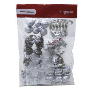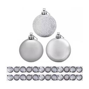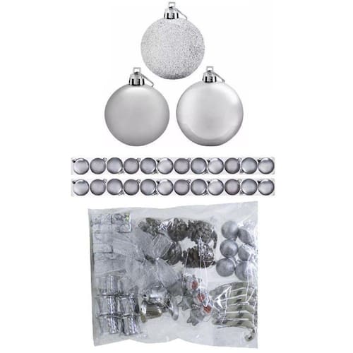 Composição: plástico, tecido espuma pinha papel Cor: Prata Quantidade: 42 enfeites Modelo: Pendentes para árvore de natal