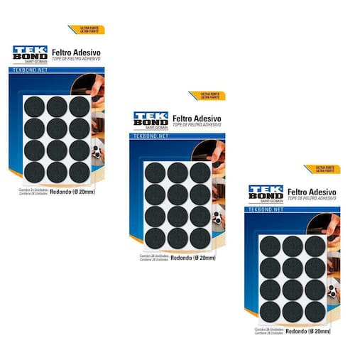 DETALHES O Feltro Protetor Adesivo Super Cola Tekbond absorve o impacto de batidas ou quedas e previne problemas com riscos, protegendo objetos, pisos e diferentes superfícies com eficiência, de forma prática e rápida. 1. Ideal para usar em móveis para proteger pisos delicados; 2. Evitar deslizamentos, riscos e batidas causadas pela movimentação de móveis; 3. Possui excelente aderência em diversas superfícies. ESPECIFICAÇÕES Material à base de viscose e poliéster. Aparência: Feltro Espessura: 5 milímetros Teor de sólidos %: 100 % Temperatura de trabalho: - 20 a + 80°C Resistência ao cisalhamento, N/mm: 2,5 N/mm2 Capacidade de peso: 25 Mpa