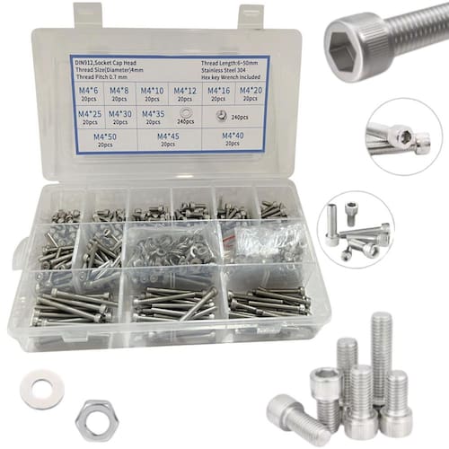 Código do produto: gn2307 O kit 720 parafusos sextavados allen com porcas e arruelas em aço inox é essencial para quem busca fixação segura, durabilidade e resistência à corrosão. Ideal para aplicações industriais, automotivas, construção civil, eletrônica, manutenção e uso geral. Todas as peças são fabricadas em aço inoxidável, garantindo alta resistência à oxidação e proporcionando maior vida útil, mesmo em ambientes agressivos. Características do produto: -material de alta qualidade: aço inoxidável, resistente à ferrugem e corrosão -kit completo: contém parafusos sextavados allen, porcas e arruelas variadas -ótima durabilidade: ideal para ambientes internos e externos -fixação segura: design sextavado allen que proporciona encaixe preciso e firmeza -organização prática: acompanha caixa organizadora com divisórias