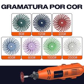 Kit 76 escovas de cerdas radiais lixa polimento para micro retíficas O kit de discos radiais para micro retífica com 76 peças é o conjunto ideal para quem busca acabamento perfeito, sem esforço e em qualquer tipo de material: metal, plástico, madeira, resina e até superfícies delicadas. Por que escolher este kit - grãos variados de abrasividade 80 a 2.500 - remove ferrugem, rebarba, tinta, resina e oxidação - rápida e fácil sem ferramentas - ideal para trabalhos de joalheria, artesanato, mecânica fina e modelismo - as escovas abrasivas radiais têm cerdas muito flexíveis, que permitem a remoção da camada superficial exterior sem danificar a camada de base abaixo - ótimo para polir pedra, madeira, alumínio, latão, bronze, aço carbono, ferro fundido, aço inoxidável e outros metais - a escova de cerdas radiais é indicada para metalurgia, preparação de tinta, revestimento e remoção de corrosão e muito mais - as cerdas flexíveis requerem menos pressão do que as escovas de aço e adaptam-se aos contornos, mesmo em peças complexas - nossos discos de polimento detalhados são adequados para rebarbação, limpeza, acabamento, usinagem e polimento de peças detalhadas, áreas minúsculas e locais irregulares - os discos de cerdas podem ser empilhados, flexíveis, frescos, duráveis e fornecem um acabamento uniforme. Use quantos discos forem necessários - acabamento fino em áreas de difícil acesso - alta durabilidade e desempenho constante O que você irá receber - 10 roda de polir com cerdas verde escuro grão 80 - 10 roda de polir com cerdas azul escuro grão 120 - 10 roda de polir com cerdas vermelho grão 220 - 10 roda de polir com cerdas azul claro grão 400 - 10 roda de polir com cerdas roxo grão 600 - 10 roda de polir com cerdas verde claro grão 1.000 - 10 roda de polir com cerdas cinza grão 2.500 - 6 suporte para discos haste 3mm - 1 estojo plástico Aplicações indicadas - polimento e brilho de metais - limpeza de soldas e pontos de corrosão - acabamento em impressões 3d - restauração de peças delicadas - ajustes precisos em madeira e acrílico 1. Serve em qualquer micro retífica ou dremel Sim, o kit é compatível com todos os modelos que utilizam hastes padrão de 3mm. 2. As lixas são reutilizáveis Sim, possuem alta durabilidade e podem ser utilizadas várias vezes dependendo da pressão e material trabalhado. 3. Quais materiais posso lixar com segurança Madeira, metais, plásticos, acrílico, resina, cerâmica, alumínio e latão. 4. Qual a rotação ideal de uso Funciona melhor entre 5.000 a 15.000 rpm, evitando o desgaste excessivo e superaquecimento. 5. Os grãos são identificáveis Sim cada cor representa um grão diferente, variando do mais abrasivo ao mais fino para acabamento. 6. Posso usar para restaurar joias ou objetos antigos Sim é ideal para trabalhos de precisão, como restauração de peças delicadas, sem riscar ou agredir o material. 7. Dá pra usar em madeira ou resina Sim são excelentes para polimento de peças em madeira, resina epóxi e até cerâmica. A dremax é a primeira e única marca brasileira dedicada exclusivamente às micro retíficas, acessórios e acoplamentos para esta indispensável ferramenta. Seja para trabalhos de precisão, artesanato, modelagem ou reparos, a dremax tem o produto certo para você.