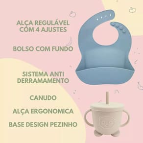 Kit 8 Alimentaçao Bebe Silicone Prato Babador Copo Tigela Cor Azul Buba Este conjunto de 8 peças de pratos com ventosa infantil é feito de silicone de alta qualidade, livre de BPA, garantindo segurança durante as refeições. O babador de silicone é macio, e os outros utensílios, como tigelas, pratos, garfos e colheres, são resistentes a quedas. A textura antiderrapante do silicone incentiva os bebês a comerem de forma independente, evitando respingos e bagunças. É perfeito para uso diário, resistindo ao desgaste e ao uso constante. Compacto e leve, é ideal para viagens, camping, piqueniques e jantares em família. Seu tamanho moderado se adapta à maioria das mesas e cadeiras infantis, facilitando o transporte. Além disso, pode ser no micro-ondas e na geladeira, mantendo a comida na temperatura certa. Este conjunto completo de talheres é um presente significativo para novos pais. Especificações: Cor disponivel: azul Material: silicone de qualidade alimentar BPA free Tamanhos: prato 19x18.2 cm , babador 24x29.5 cm , tigela 11.2x11 cm , colher 13.5 x 3.5 cm , copo de água 14 x 14 cm Faixa etária: acima de 3 meses Homologação Inmetro: IP-BRI-0691/2022-08 Marca: Não Informado