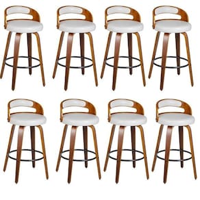 Com design contemporâneo, a banqueta Roma traz elegância e funcionalidade para sua casa. Os detalhes em madeira trazem conforto e personalidade para qualquer ambiente. O revestimento em PU facilita o uso no dia a dia e o apoio de pés garante o conforto das suas visitas. Altura do Conjunto: 89 cm Ambiente: null Ambiente Principal: Sala de Jantar Cor: Branco Informação Complementar: 8x Banqueta para Cozinha Alta Giratória Madeira Roma Branco Largura: 44 cm Altura: 89 cm Peso: 6,7 kg Profundidade: 46 cm Necessita Montagem: Sim