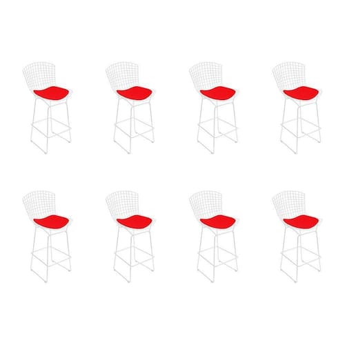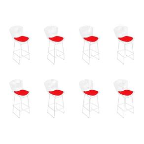 AS IMAGENS SÃO MERAMENTE ILUSTRATIVAS E PODEM SOFRER VARIAÇÕES DE COR E PEQUENOS DETALHES DE ACORDO COM O SEU MONITOR, ILUMINAÇÃO DO AMBIENTE E ATÉ MESMO A SUA PERCEPÇÃO VISUAL.Kit 8 Banquetas Bistrà Bertoia Branca D80 com Assento Vermelho