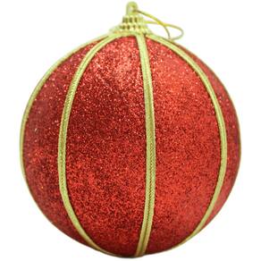 8 Kit Bolas Para Árvore De Natal Vermelha Com Glitter Dourado 80mm;