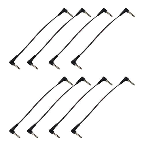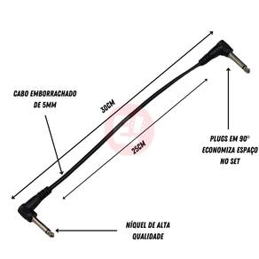 Kit 8 Cabo P10 90º em L Para Pedal Efeitos 25cm Preto MXT com Plug Niquelado