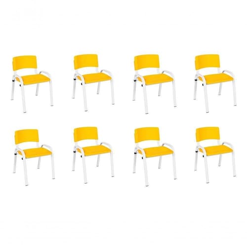 KIT 8 CADEIRA ISO INFANTIL ESCOLAR BASE BRANCO.