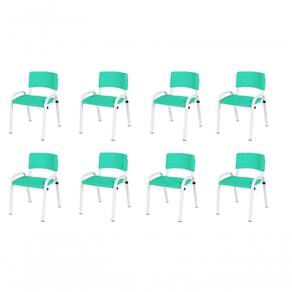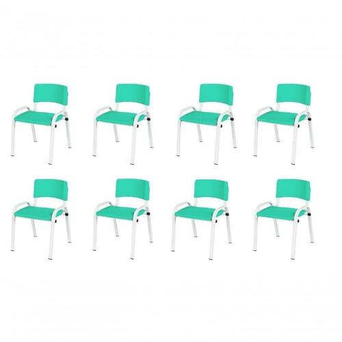 Kit 8 Cadeira Iso Infantil Creche, Escola Base Branco Verde água
