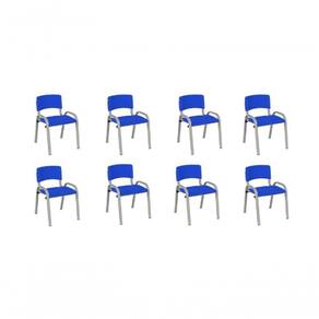 Kit 8 Cadeira Iso Infantil Creche, Escola Base Cinza Azul