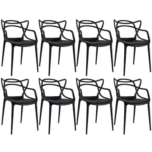 Kit 8 Cadeiras Allegra Preta Sala Cozinha Jantar Modelo: Cadeira Allegra Masters Conhecida no mundo inteiro pelo seu design único e a forma como foi criada a cadeira Allegra Masters é uma homenagem a três cadeiras símbolo da história do design a cadeira Jacobsen de Arne Jacobsen a cadeira Saarinen de Eero Saarinen e a DSR do casal Eames. Os modelos se entrelaçam em uma combinação de curvas dando vida a uma e cativante fusão de estilos. Material da Estrutura: Polipropileno Garantia de 3 meses por de fabricação. Altura Total: 84 cm Altura do Chão Até o Assento: 48 cm Profundidade Interna do Assento: 48 cm Largura Interna do Assento: 53 cm Peso Máx. Recomendado: 120 kgs Peso unitário: 4,2 kgs