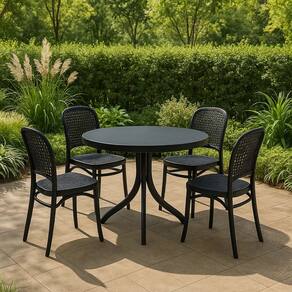 Modelo: Barcelona Cor: Preto Estrutura: Polipropileno resistente de alta qualidade Encosto: Padrão sextavado com proteção UV Peso suportado: até 120 Kg com estabilidade Assento: integrado à estrutura