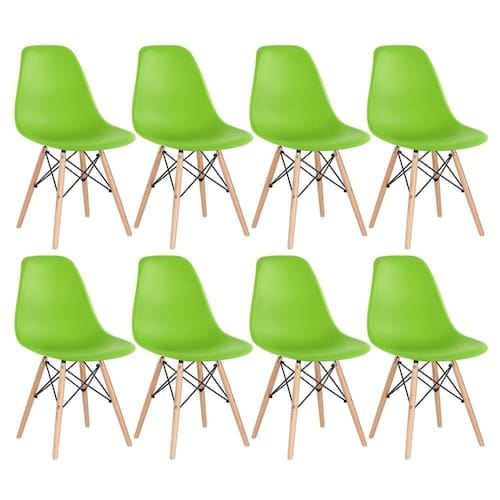 Kit 8 Cadeiras Charles Eames Eiffel Dsw Com Pés De Madeira Clara Verde Claro