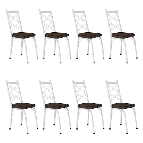 Kit 8 Cadeiras de Cozinha Delaware Estampado Imbuia Pés de Ferro Branco - Pallazio - Cinza