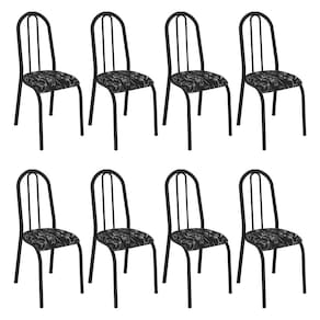 Kit 8 Cadeiras de Cozinha Flórida Estampado Preto Florido Pés de Ferro Preto - Pallazio