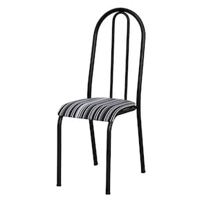 O estofamento estampado não apenas confere personalidade à cadeira, mas também proporciona conforto durante as refeições. Os pés de ferro garantem estabilidade e durabilidade, tornando-a uma escolha ideal para o ambiente da cozinha.
