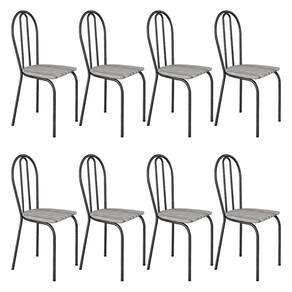 Kit 8 Cadeiras de Cozinha Texas Estampado Linho Pés de Ferro Cromo Preto - Pallazio